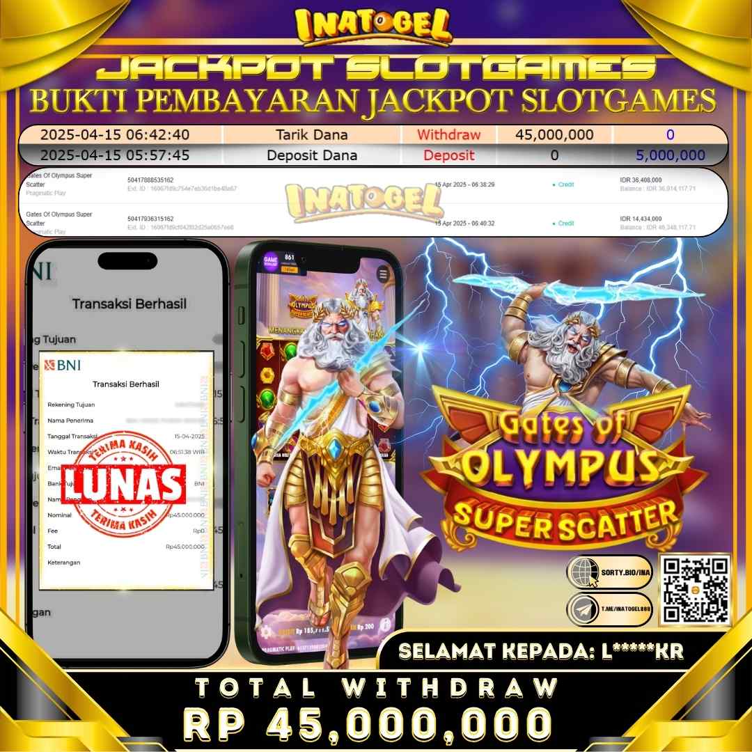 Inatogel Jackpot Slot Game Gates Of Olympus Super Scatter Rp45,000,000