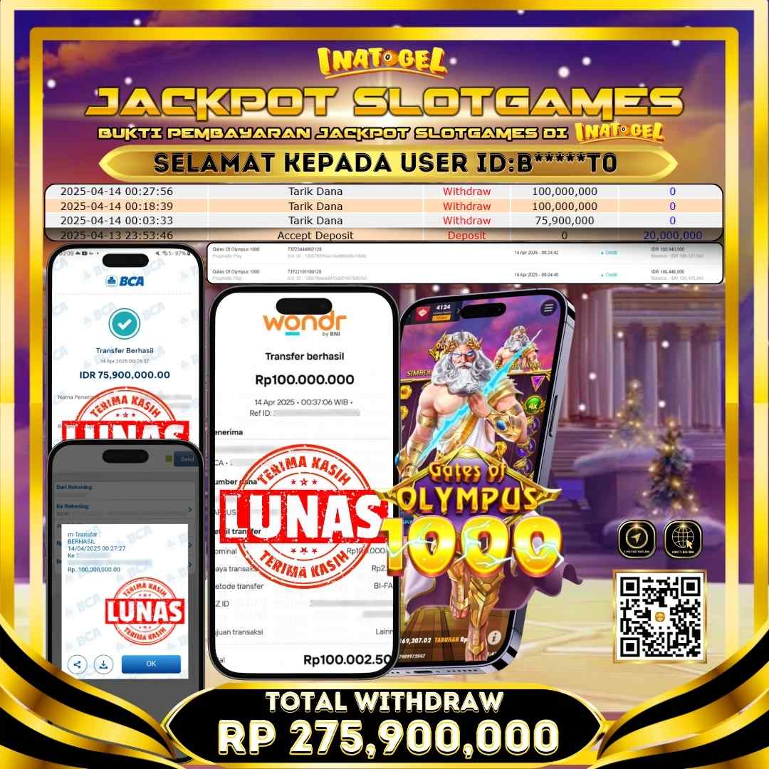 Inatogel Jackpot Slot Game Gates Of Olympus 1000 Rp275,900,000
