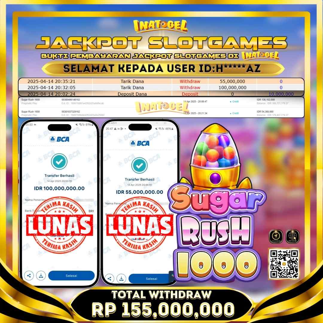 Inatogel Jackpot Slot Game Sugar Rush 1000 Rp155,000,000