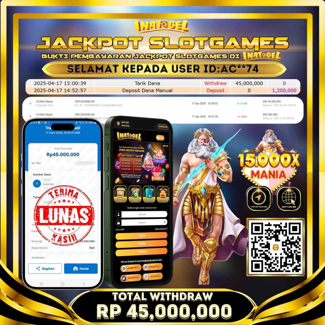 Inatogel Jackpot Slot Game 15.000x Mania Rp45,000,000
