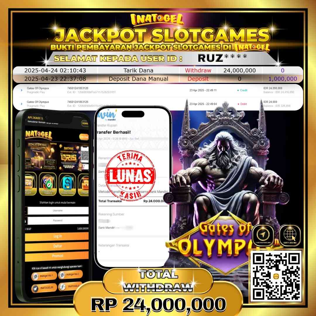 Inatogel Jackpot Slot Game Gates Of Olympus Rp24,000,000