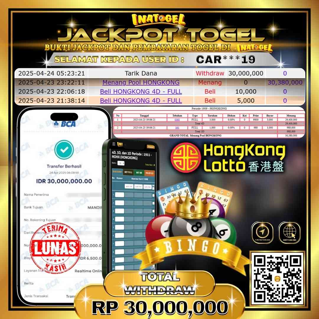 Inatogel Jackpot Togel Hongkong Lotto Rp30,000,000