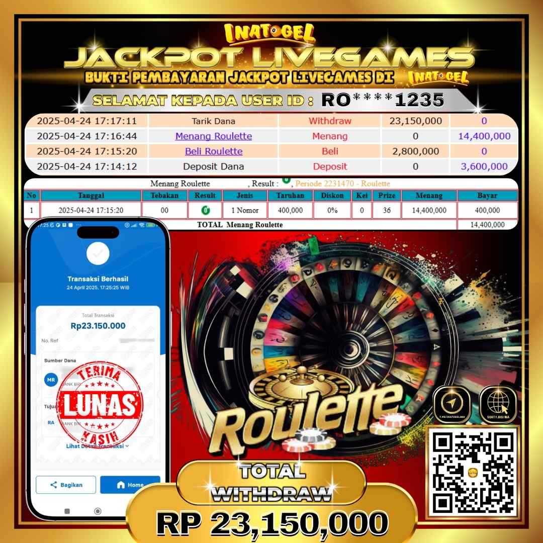 Inatogel Jackpot LIVE GAME ROULLETE Rp23,150,000