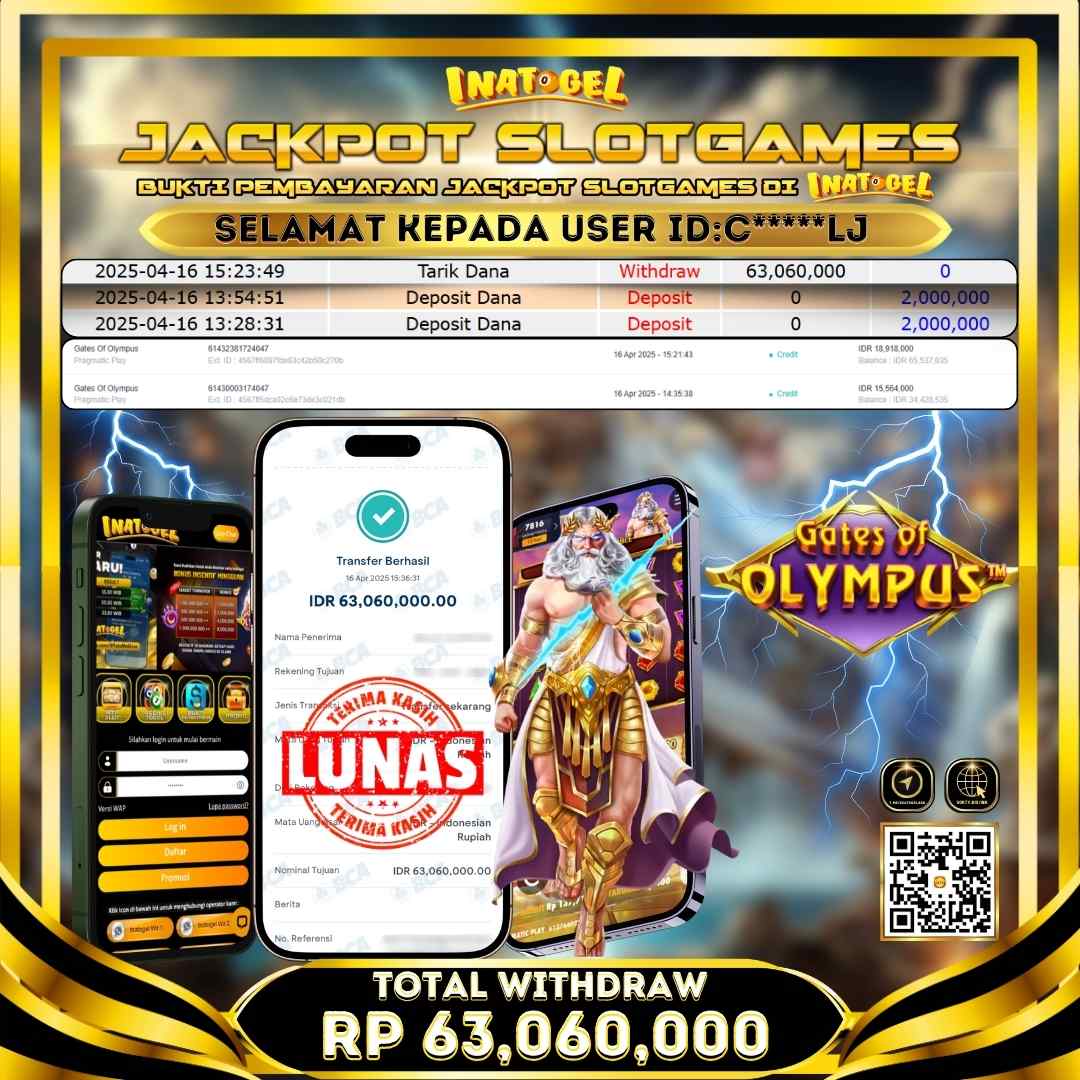 Inatogel Jackpot Slot Game Gates Of Olympus Rp63,060,000