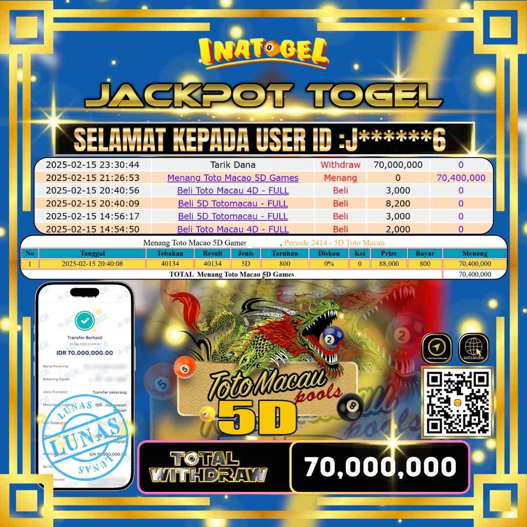 Inatogel Jackpot Togel Toto Macau 5D Rp70,000,000