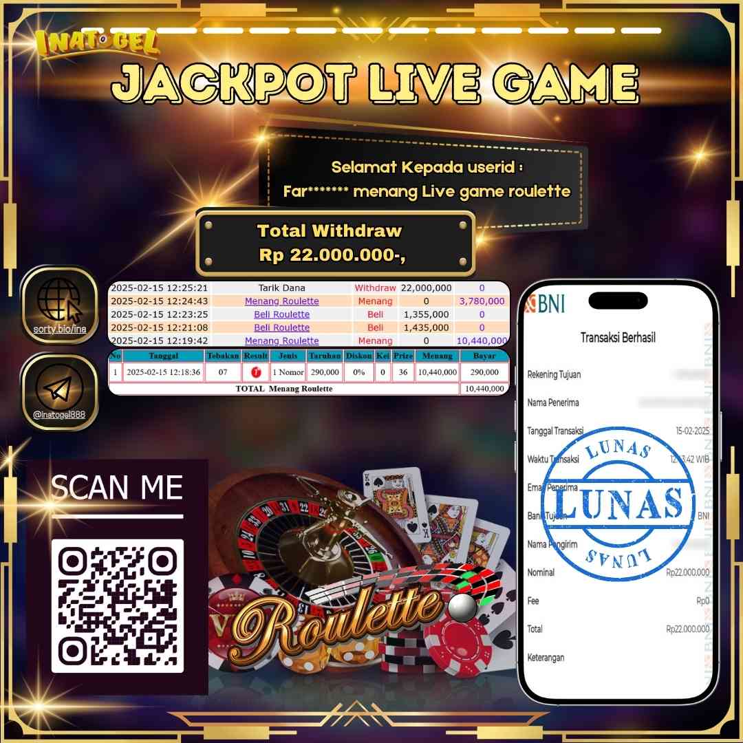 Inatogel Jackpot Live Game Roulette Rp22,000,000,-