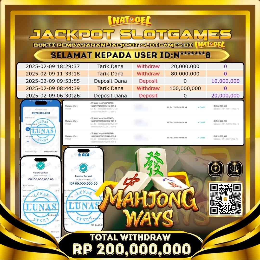 Inatogel Jackpot Slot Game Mahjong Ways Rp200,000,000