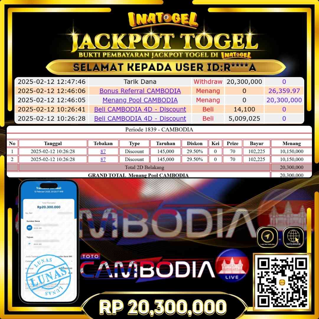 Inatogel Jackpot Togel Cambodia Rp20,300,000