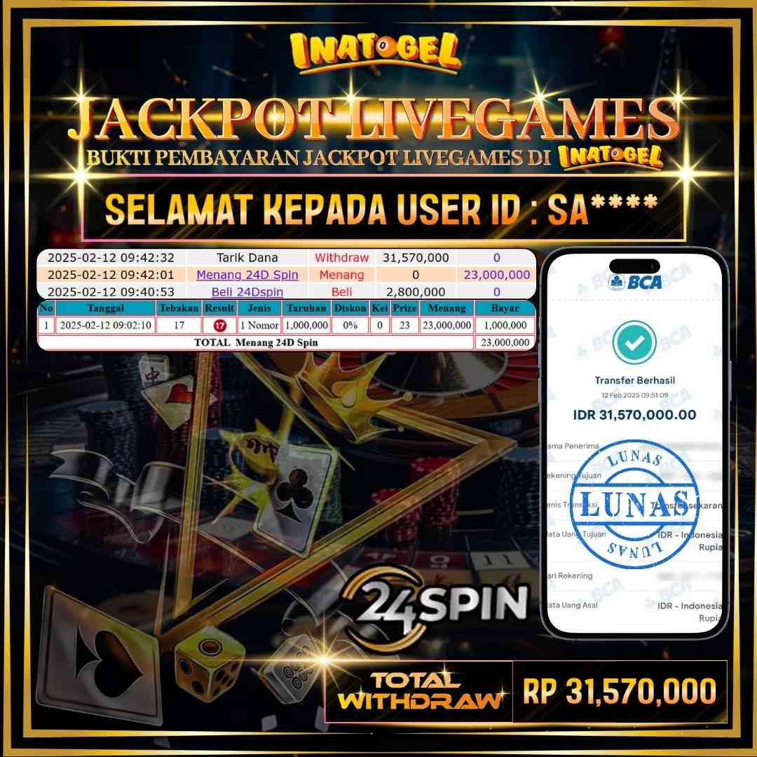Inatogel Jackpot Live Game 24D Spin Rp 31,570,000