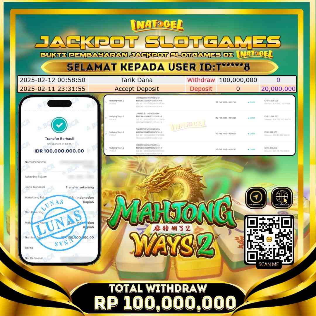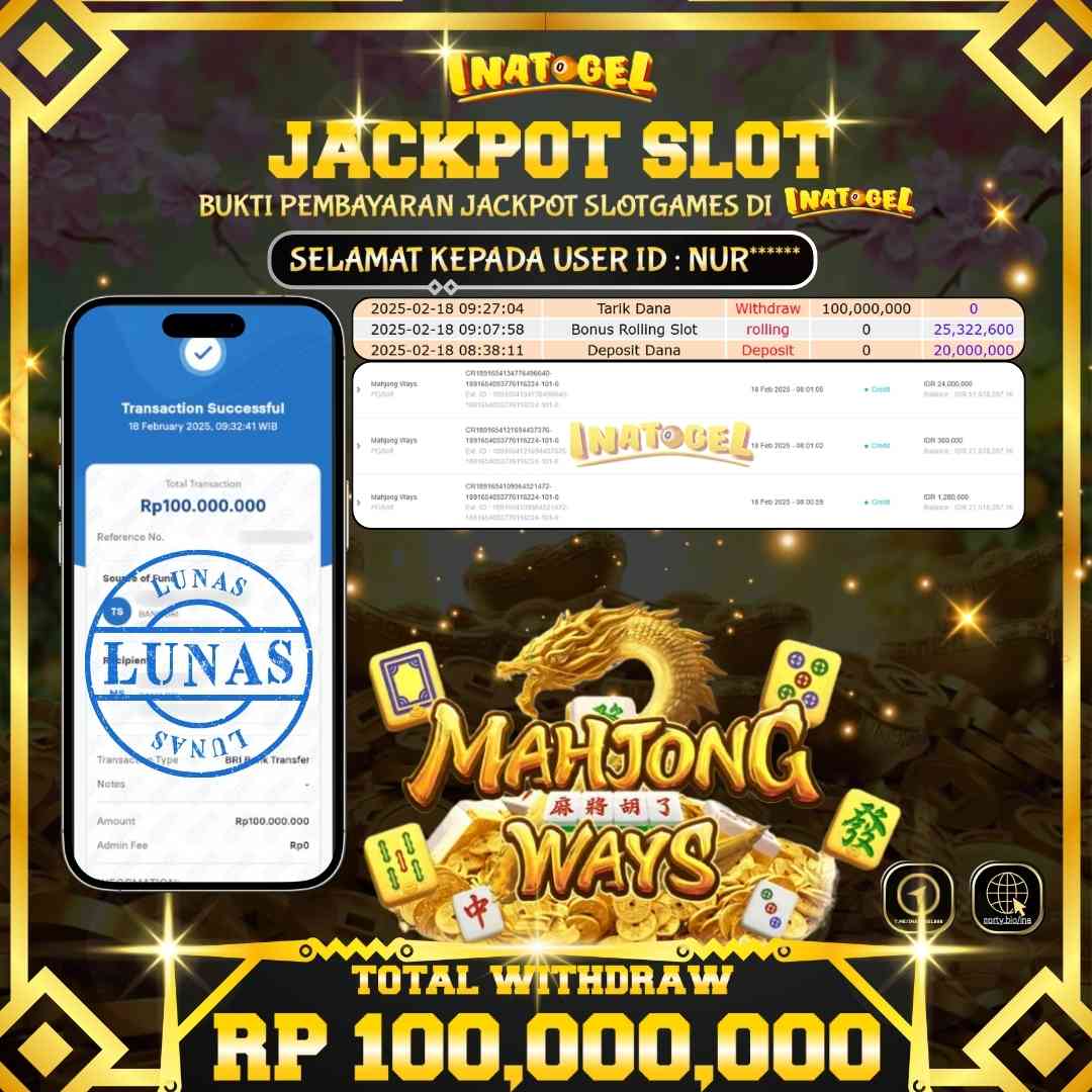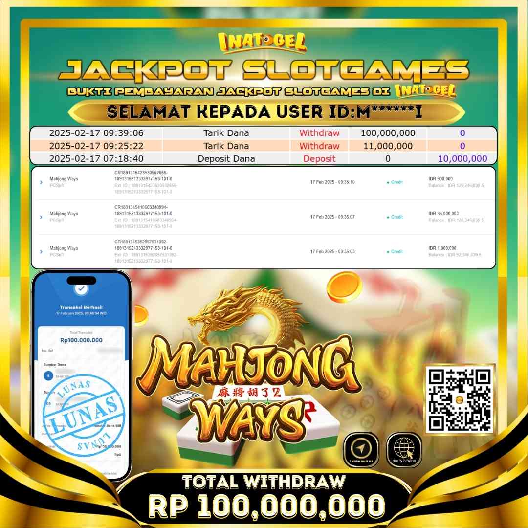 Inatogel Jackpot Slot Game Mahjong Ways Rp100,000,000