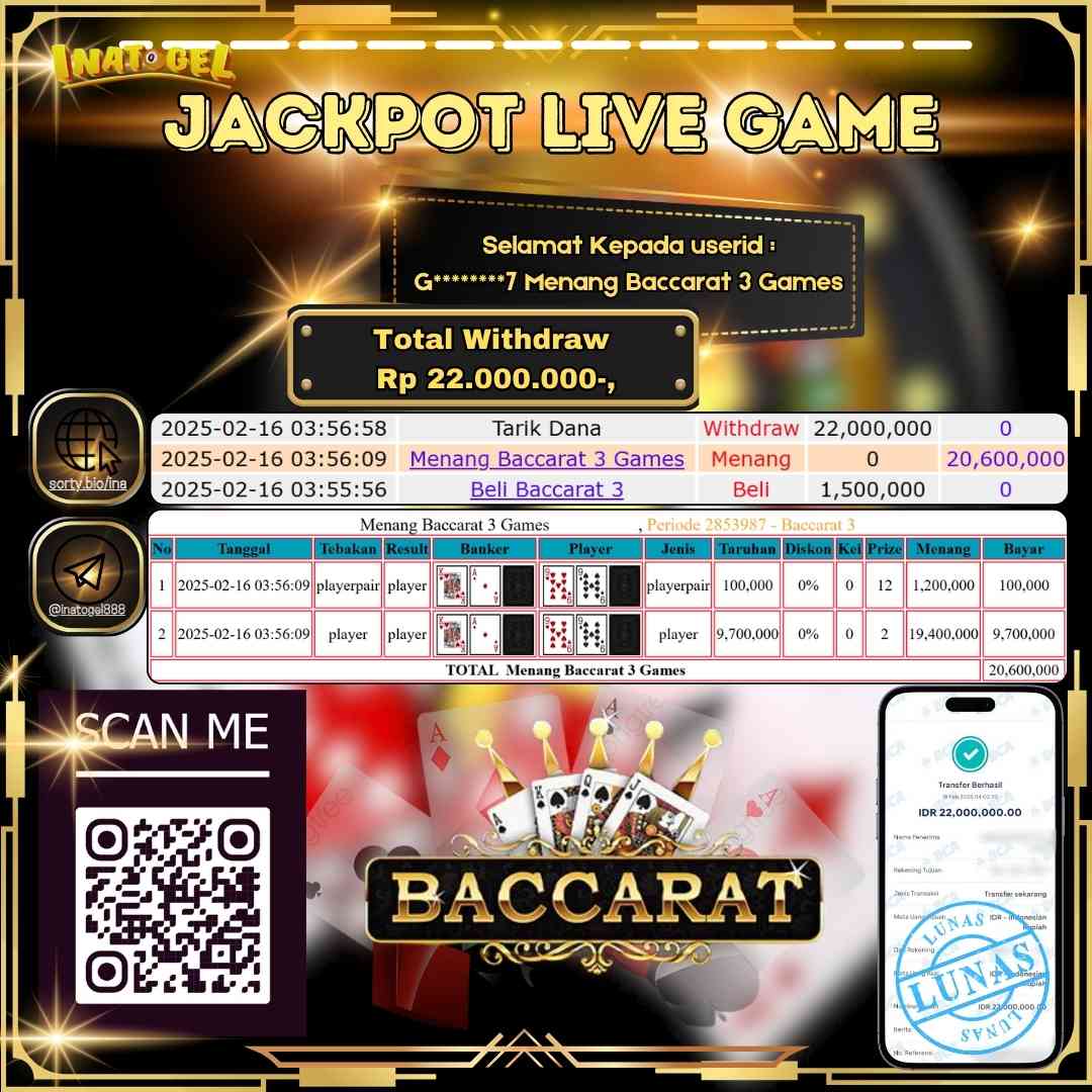 Inatogel Jackpot Live Game Baccarat Rp22,000,000