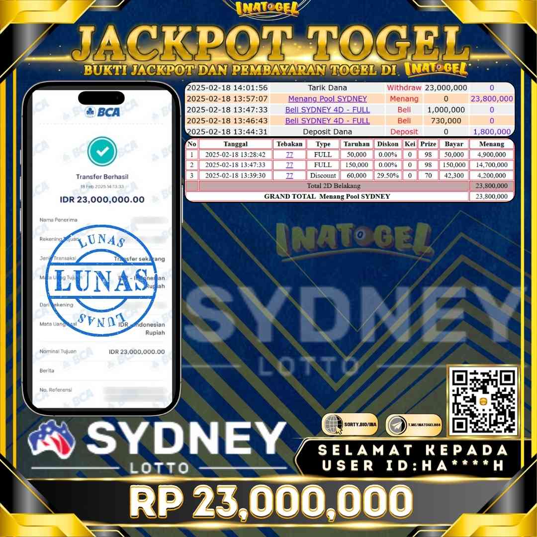 Inatogel Jackpot Togel Sydney Lotto Rp23,000,000