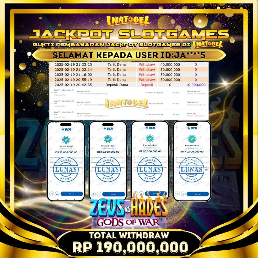 Inatogel Jackpot Slot Game Zeus vs Hades Gods of War Rp190,000,000