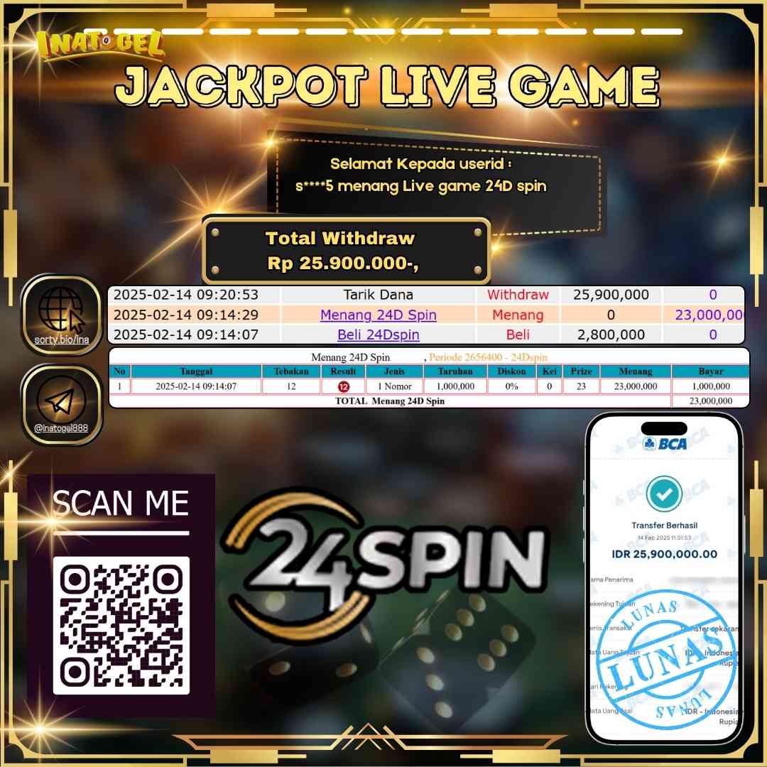 Inatogel Jackpot Live Game 24D Spin Rp 25,900,000