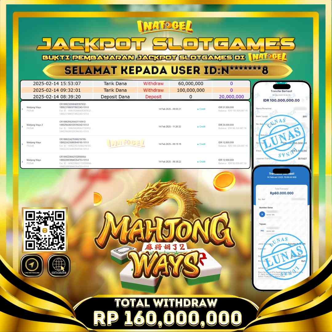 Inatogel Jackpot Slot Game Mahjong Ways Rp160,000,000