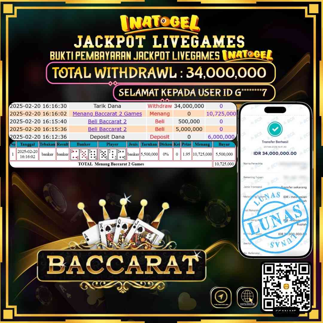 Inatogel Jackpot Live Game Baccarat Rp34,000,000