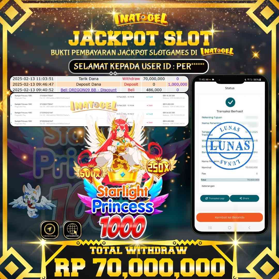 Inatogel Jackpot Slot Game Starlight Princess 1000 Rp70,000,000