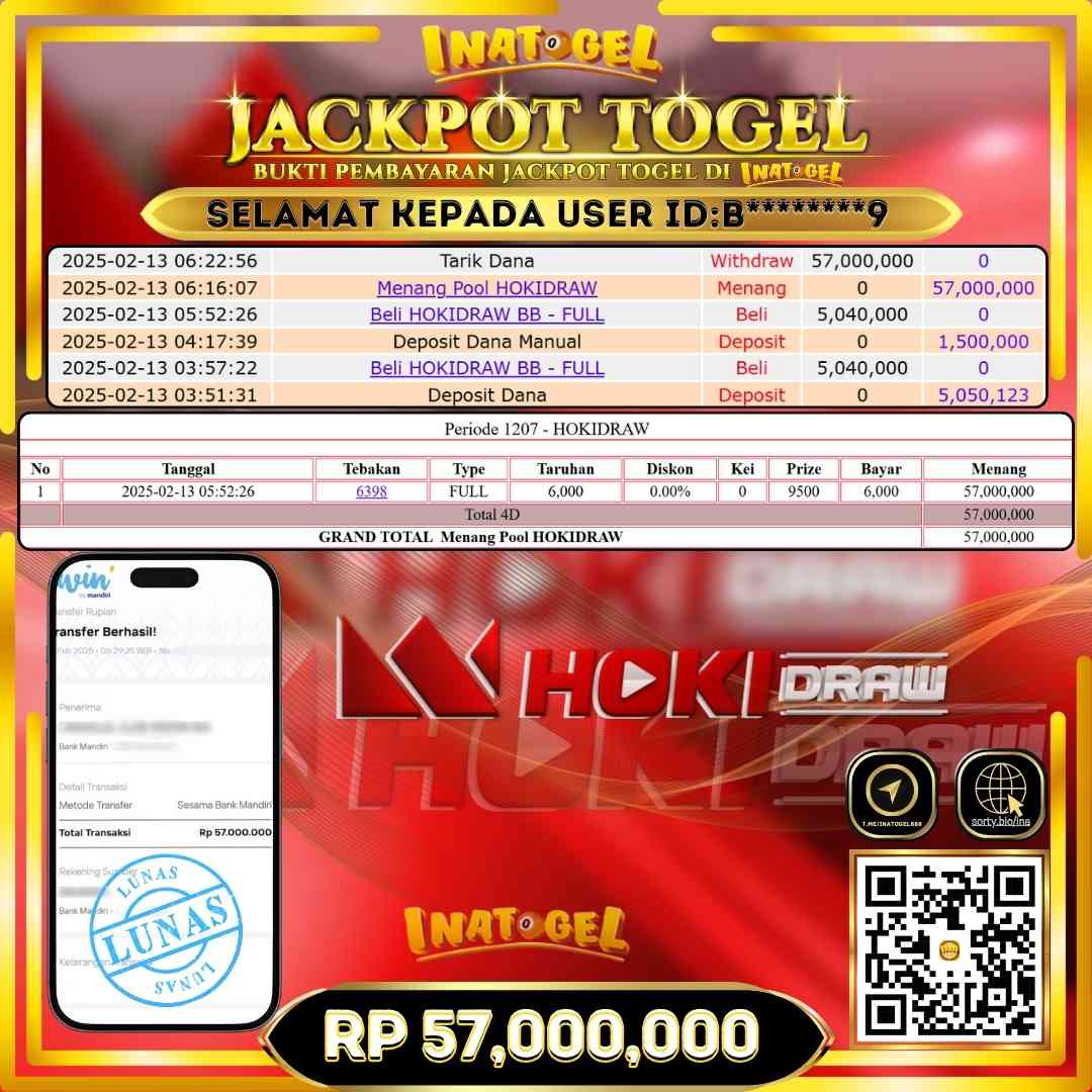 Inatogel Jackpot Togel Hoki Draw Rp57,000,000