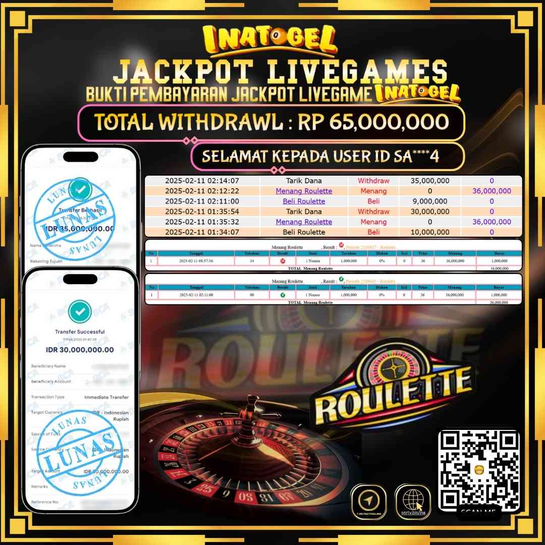 Inatogel Jackpot Live Game Roulette Rp65,000,000,-