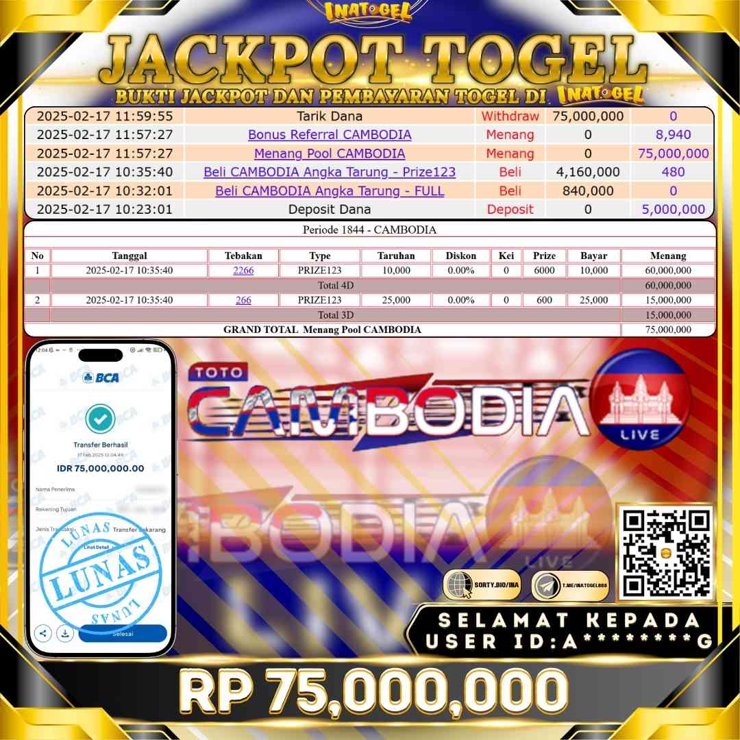 Inatogel Jackpot Togel Cambodia Rp75,000,000