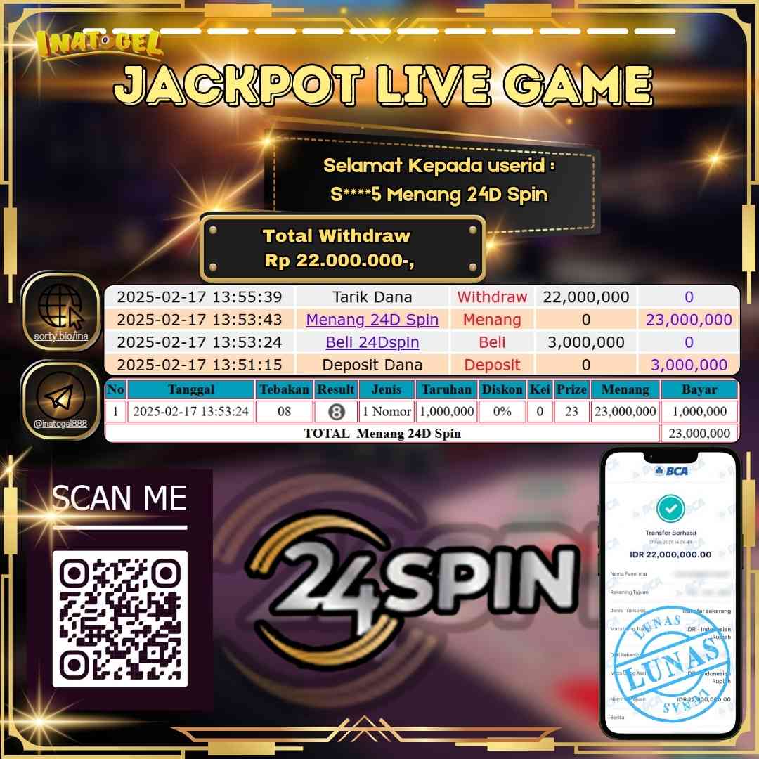 Inatogel Jackpot Live Games 24D Spin Rp22,000,000