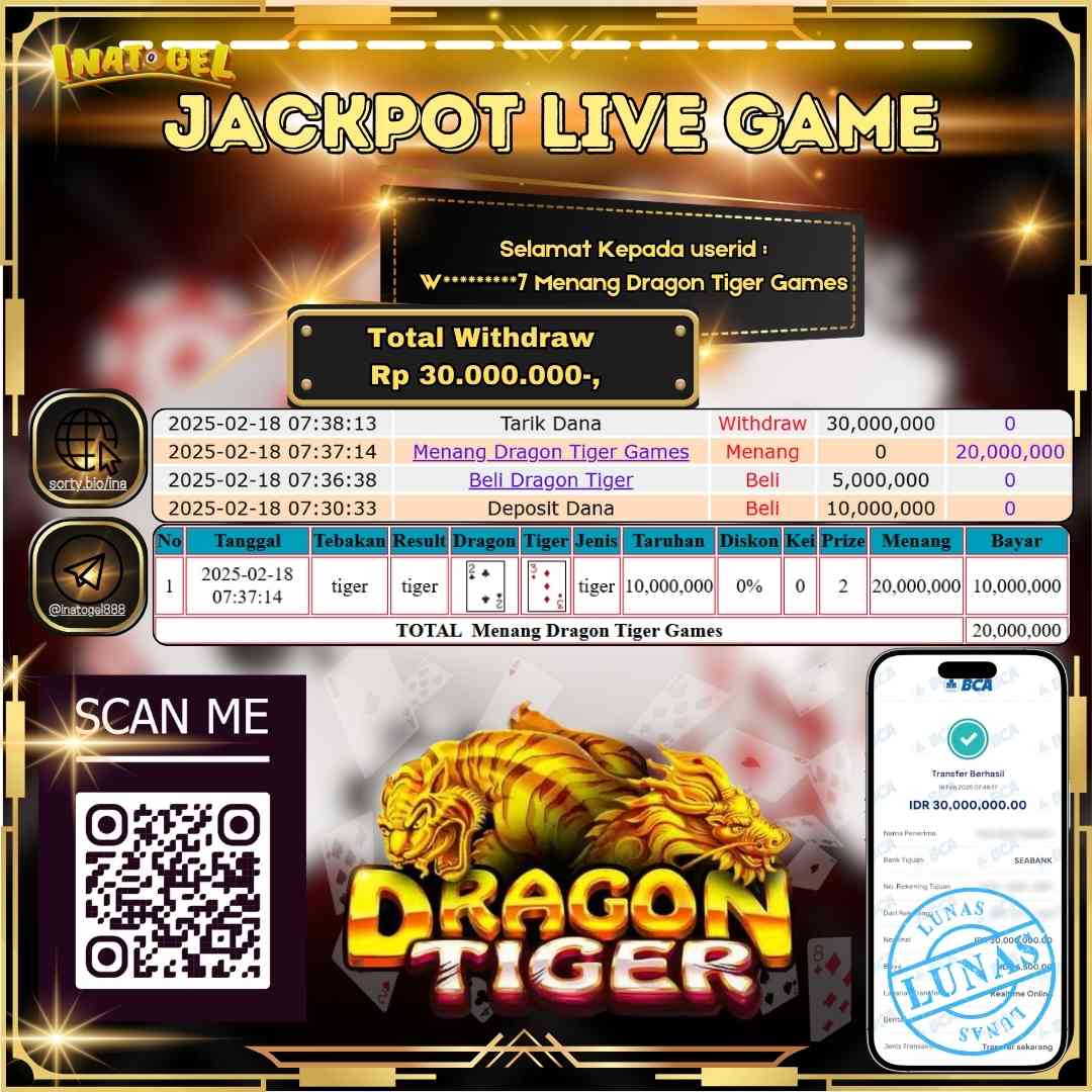 Inatogel Jackpot Live Games Dragon Tiger Rp30,000,000