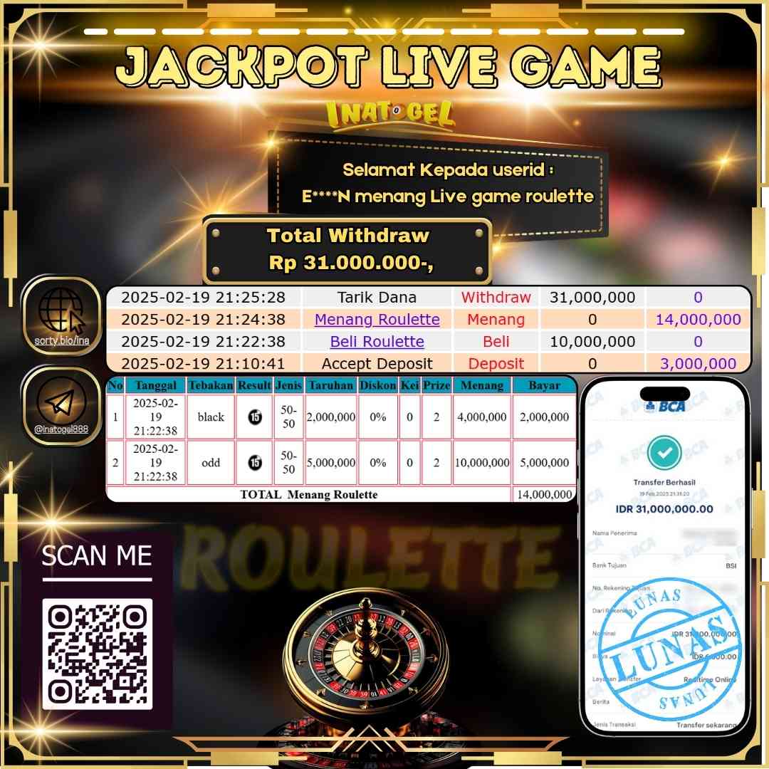 Inatogel Jackpot Live Games Roulette Rp31,000,000