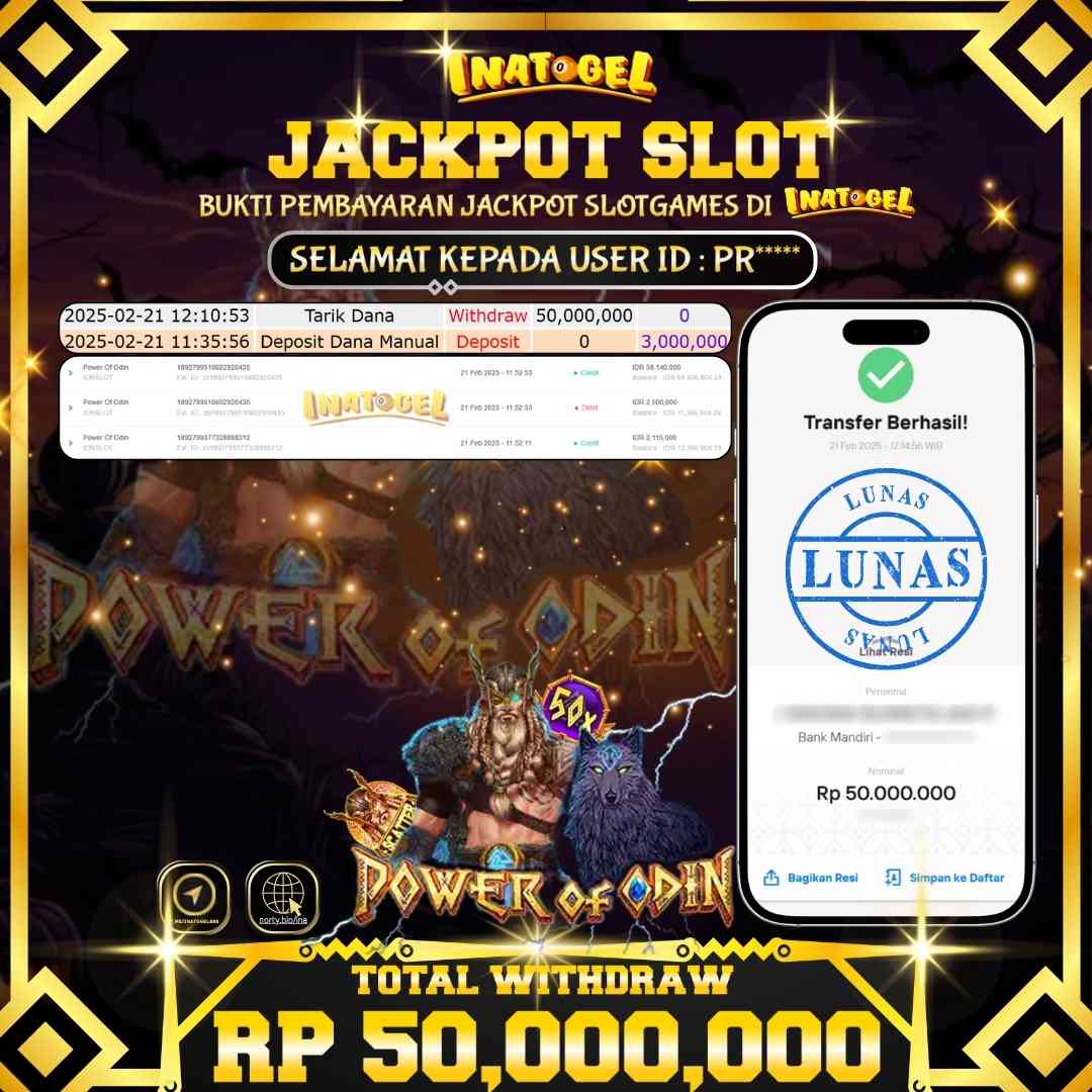 Inatogel Jackpot Slot Game Power Of Odin Rp50,000,000