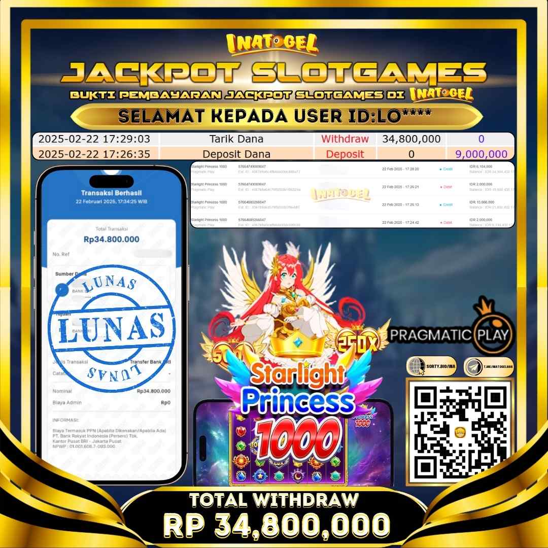 Inatogel Jackpot Slot Game Starlight Princess 1000 RP34,800,000