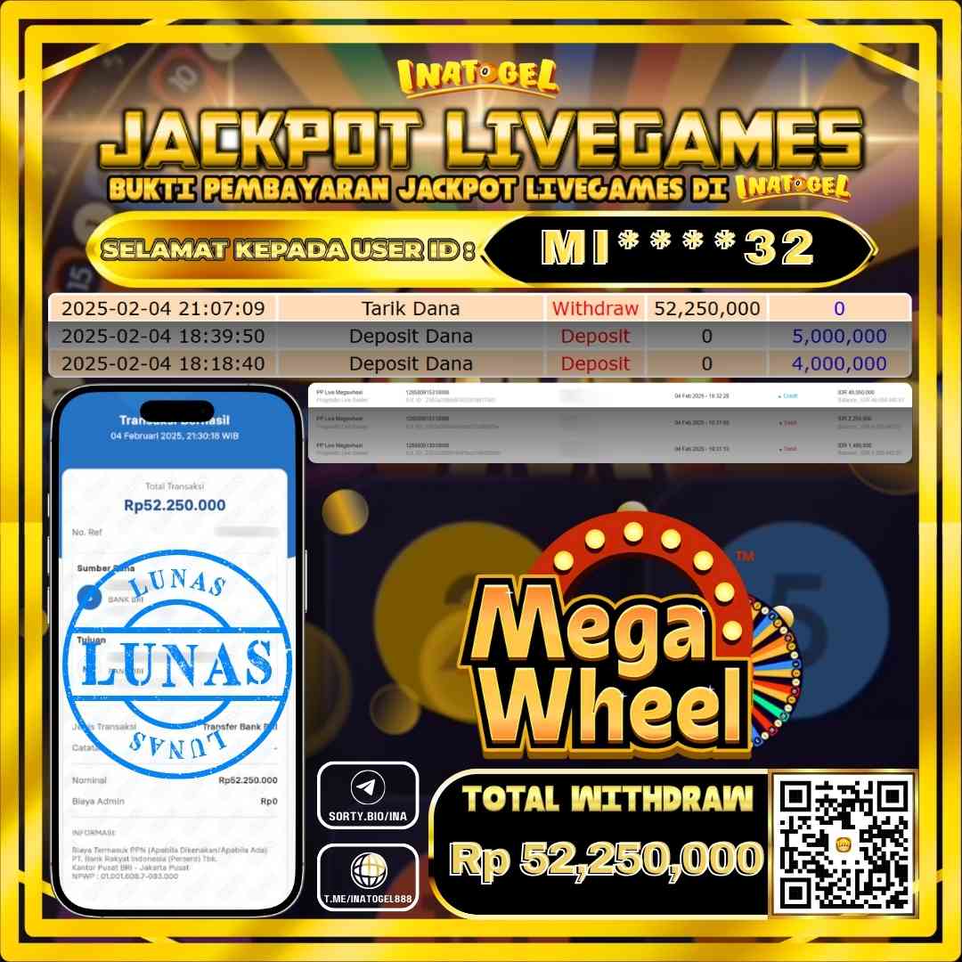 Inatogel Jackpot PP Live Megawheel Rp52,250,000