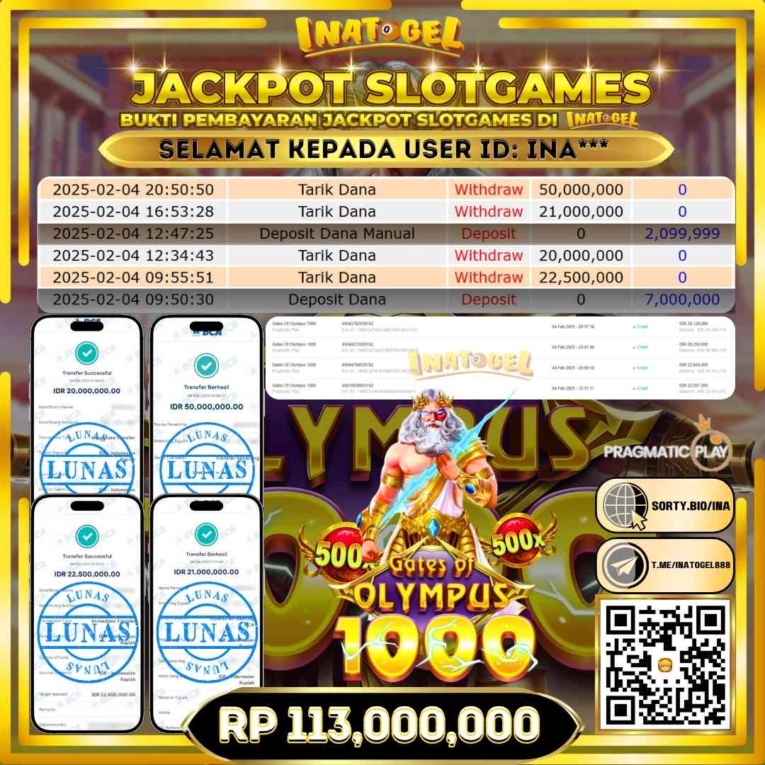 Inatogel Jackpot Slot Game Gates Of Olympus 1000 Rp113,000,000
