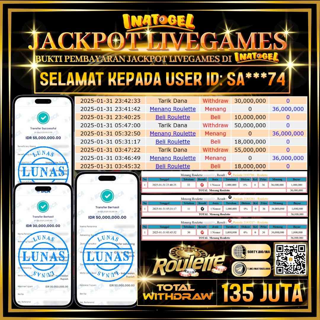 Inatogel Jackpot Live Game Roulette Rp135,000,000