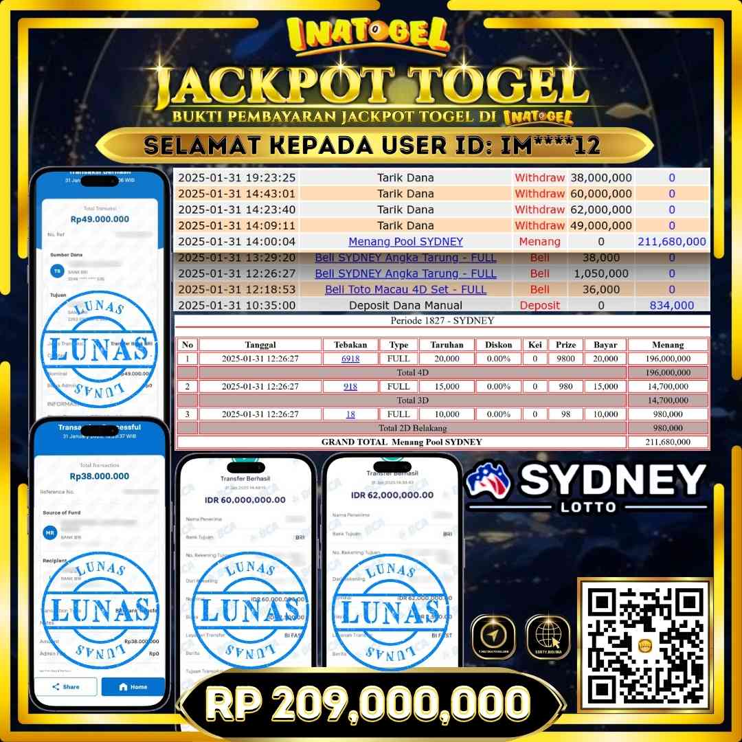 Inatogel Jackpot Togel Sydney Lotto Rp209,000,000