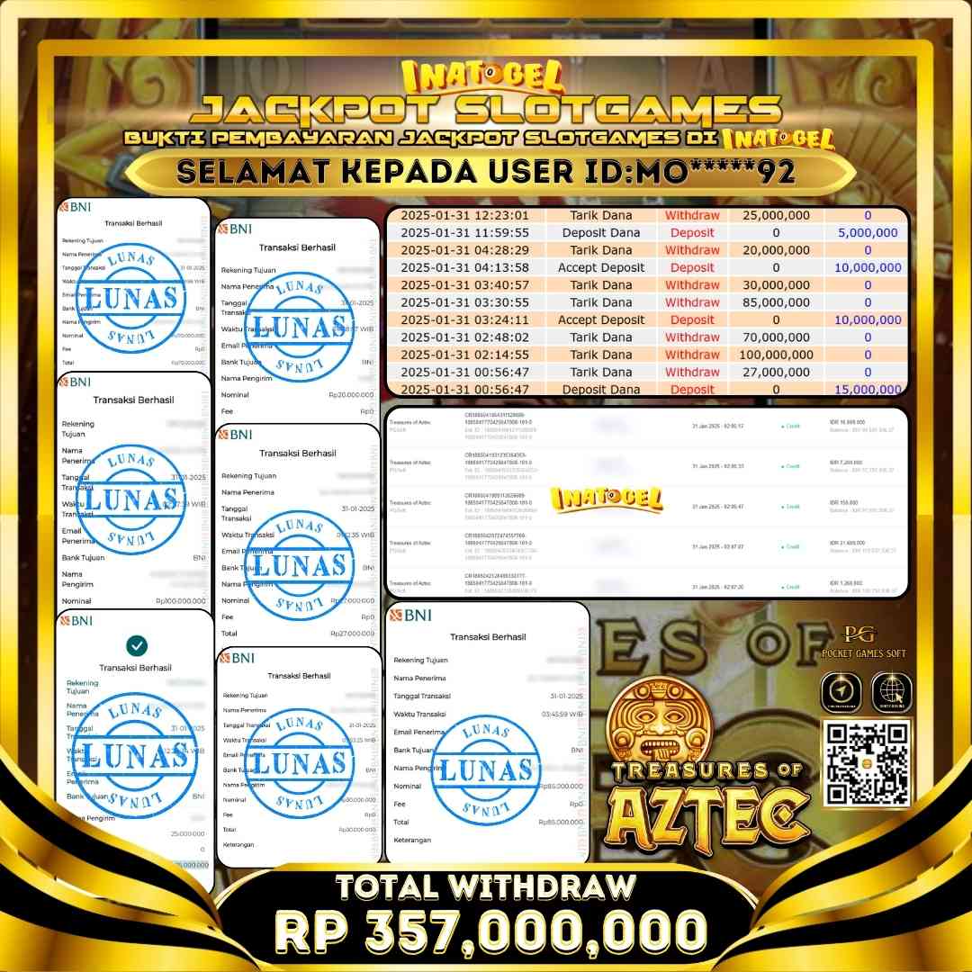 Inatogel Jackpot Slot Game Treasures Of AZTEC Rp357,000,000