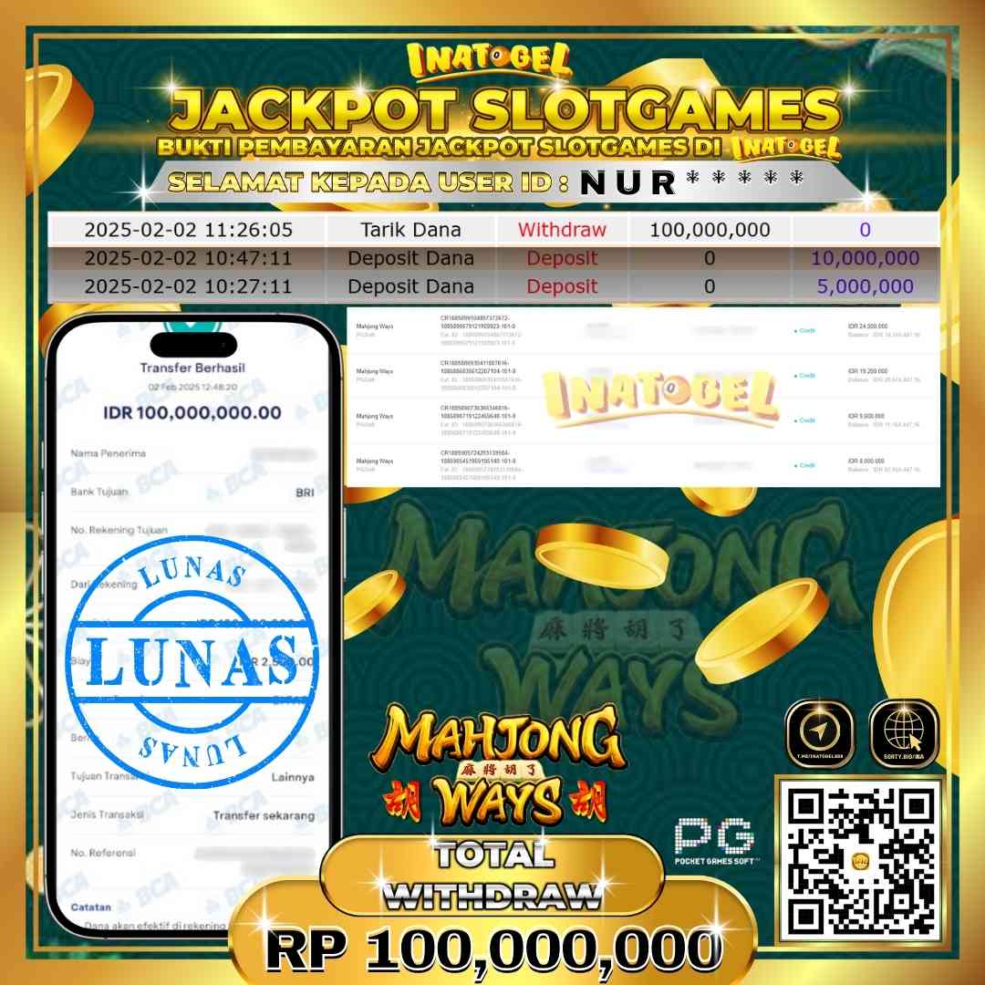 Inatogel Jackpot Slot Game Mahjong Ways Rp100,000,000