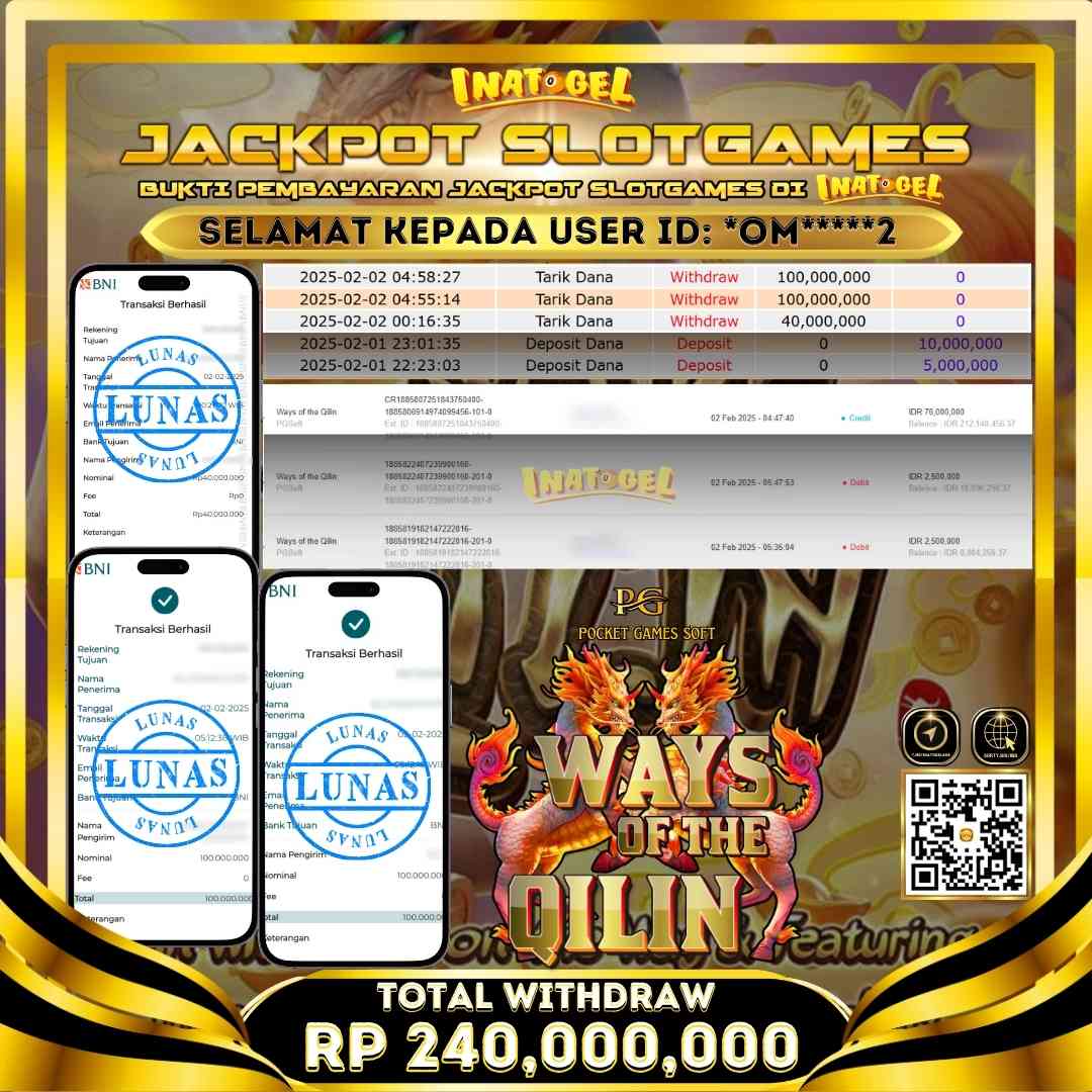 Inatogel Jackpot Slot Game Ways Of The Qilin Rp240,000,000