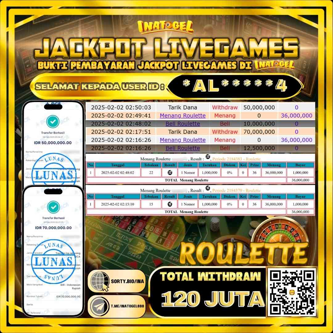 Inatogel Jackpot Live Game Roulette Rp120,000,000