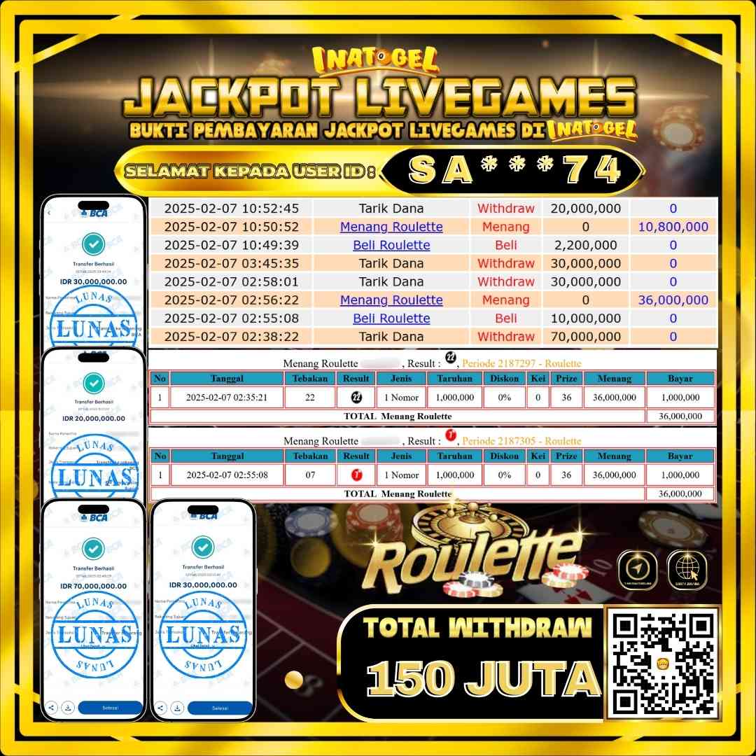 Inatogel Jackpot Live Game Roulette Rp150,000,000