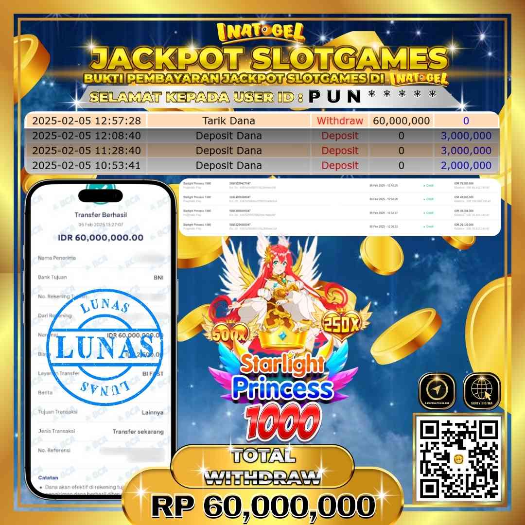 Inatogel Jackpot Slot Game Starlight Princess 1000 Rp60,000,000