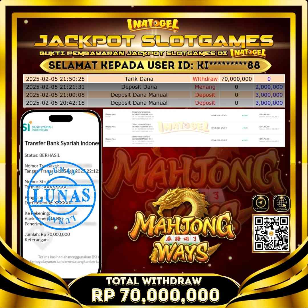 Inatogel Jackpot Slot Game Mahjong Ways Rp70,000,000