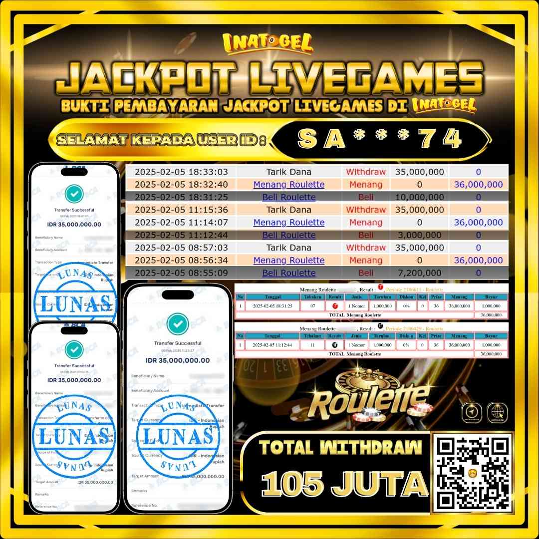 Inatogel Jackpot Live Game Roulette Rp105,000,000
