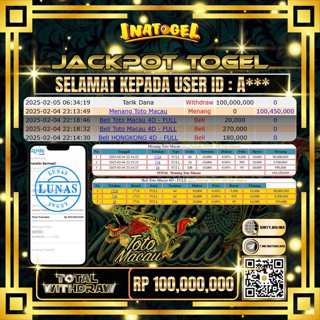 Inatogel Jackpot Togel Toto Macau Rp100,000,000