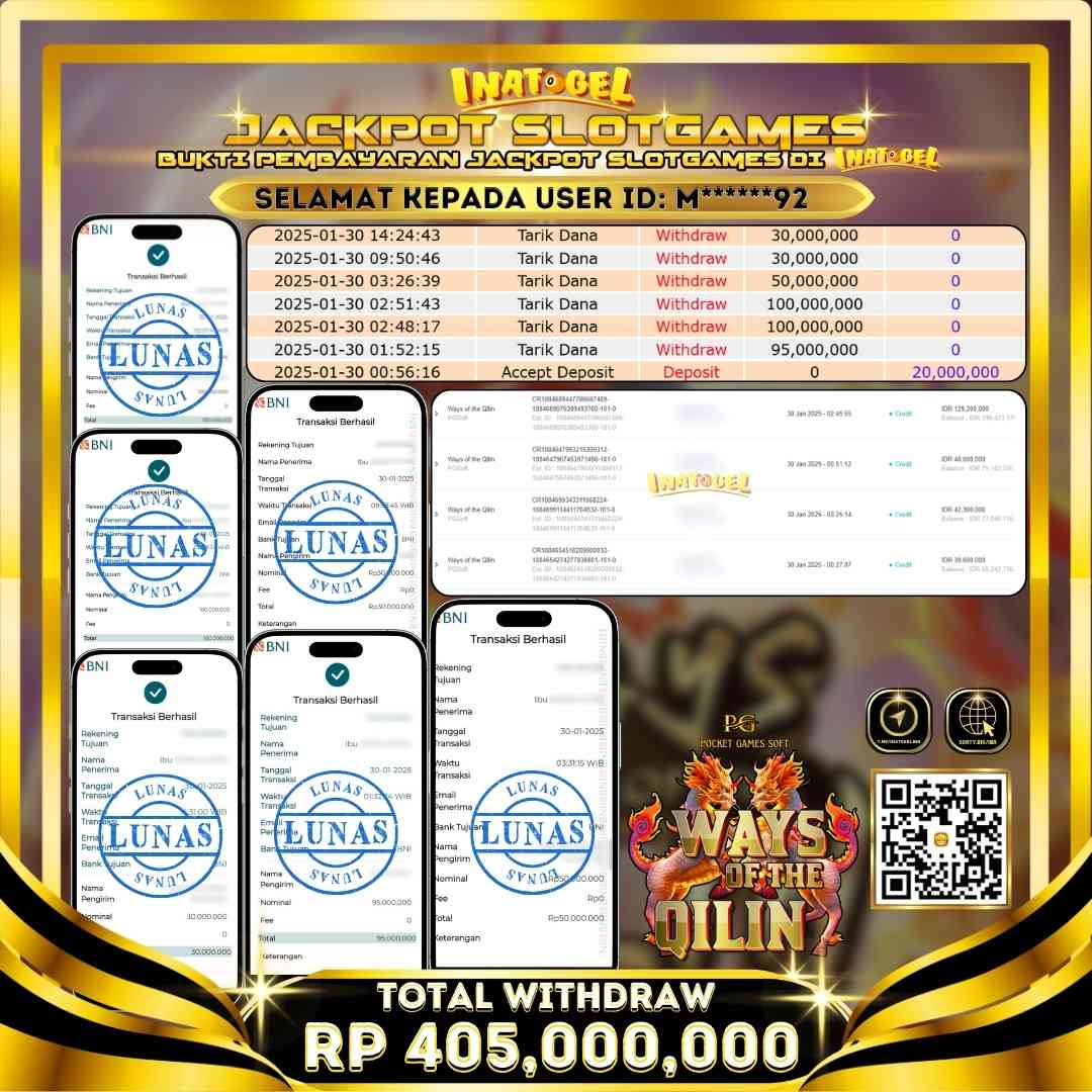 Inatogel Jackpot Slot Game Ways Of The Qilin Rp405,000,000