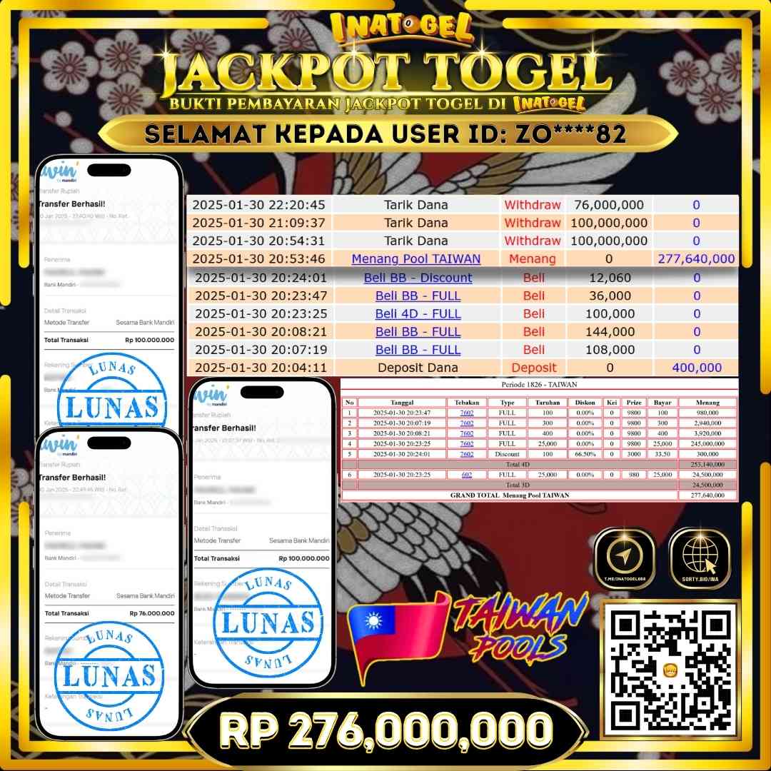 Inatogel Jackpot Togel Taiwan Pools Rp276,000,000