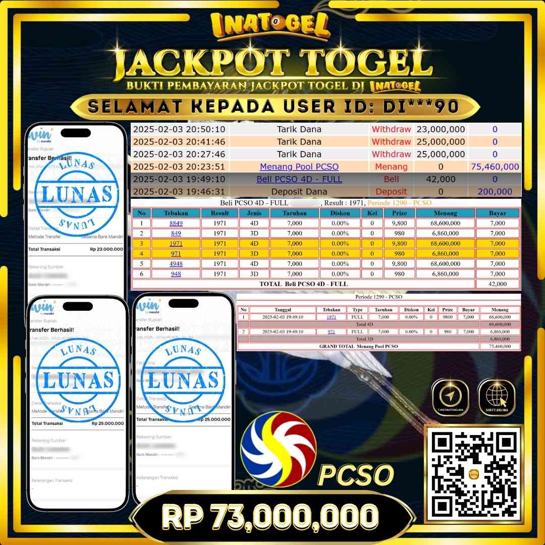 Inatogel Jackpot Togel PCSO Rp73,000,000