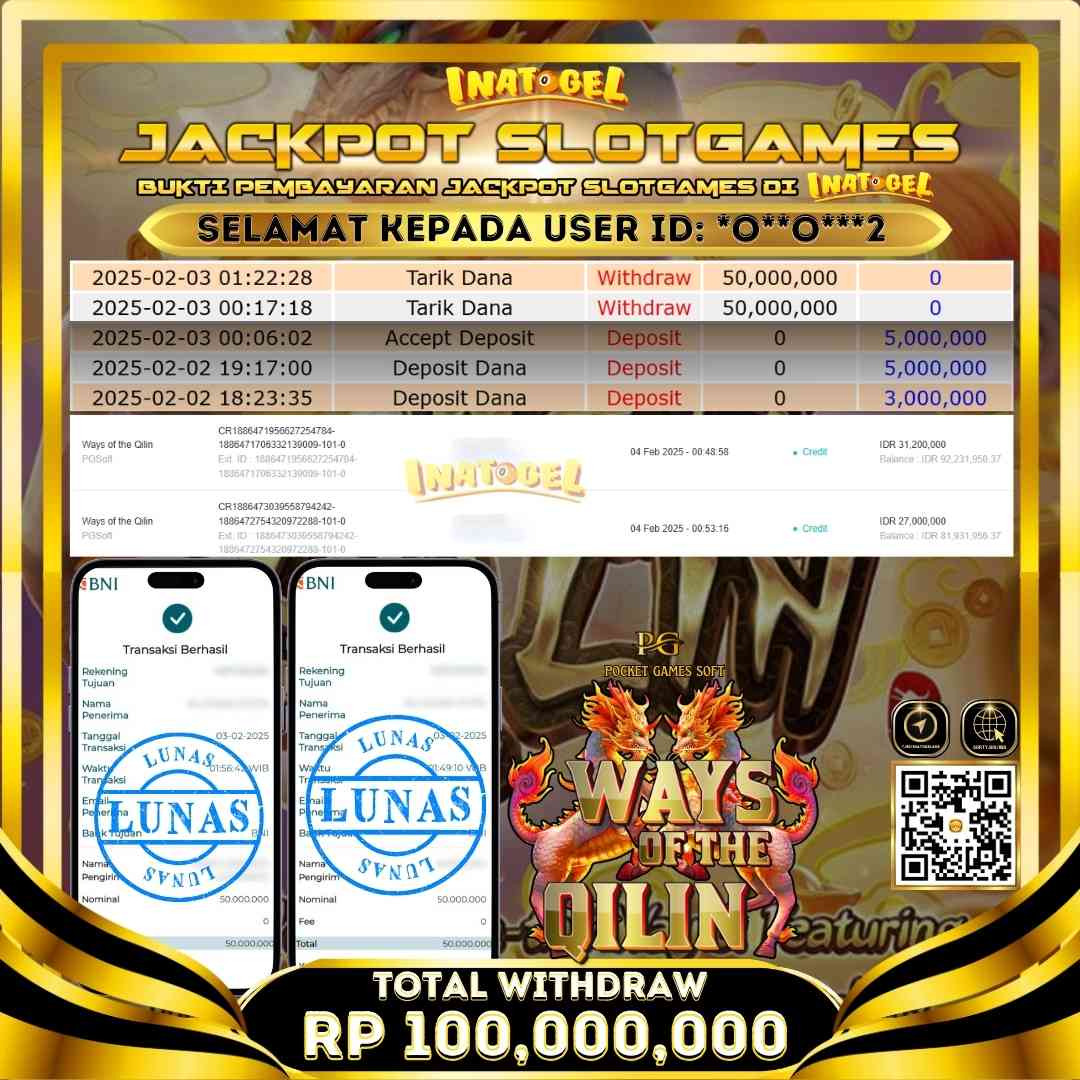 Inatogel Jackpot Slot Game Ways Of The Qilin Rp100,000,000