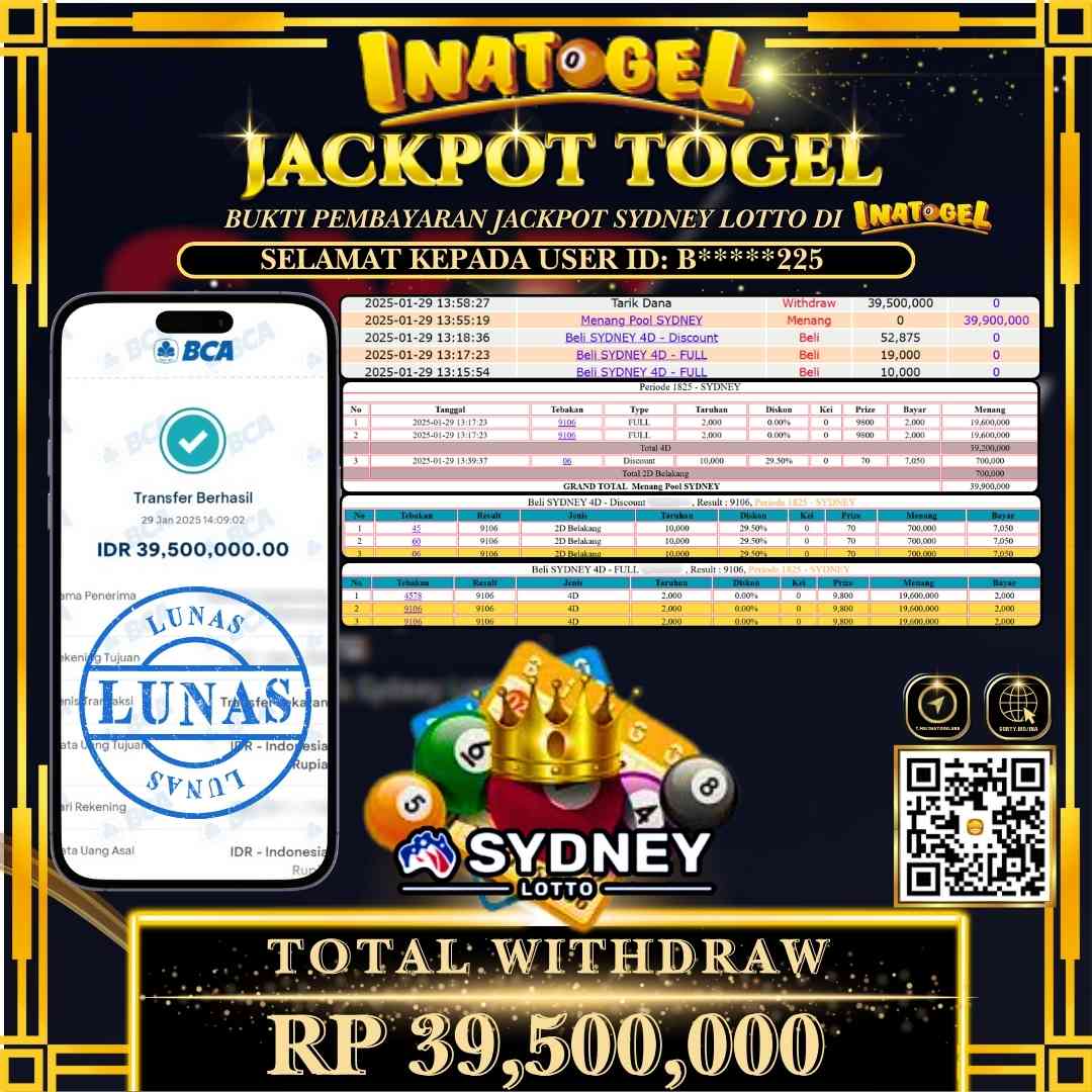 Inatogel Jackpot Togel Sydney Lotto Rp39,500,000