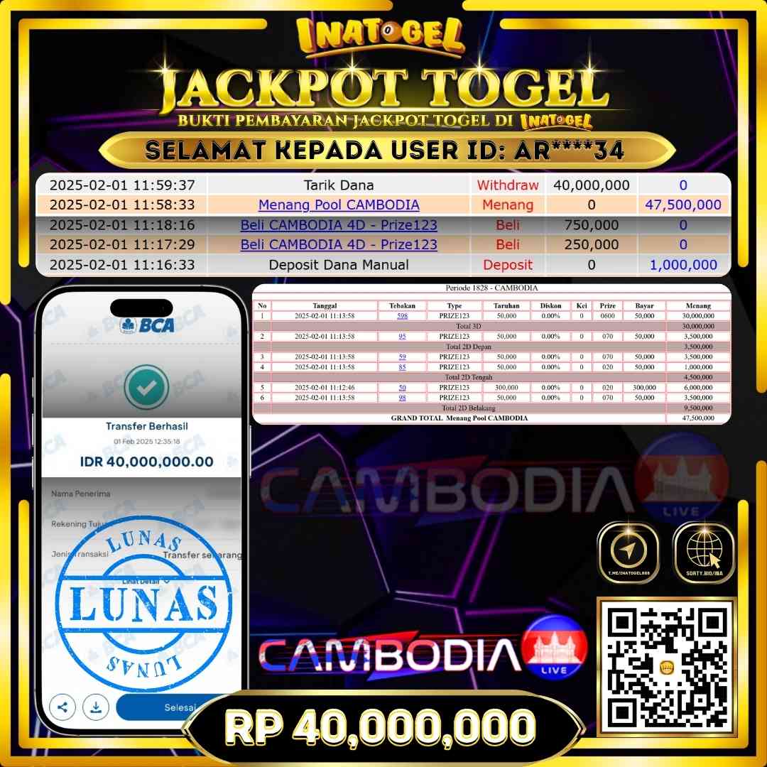 Inatogel Jackpot Togel Cambodia Rp40,000,000