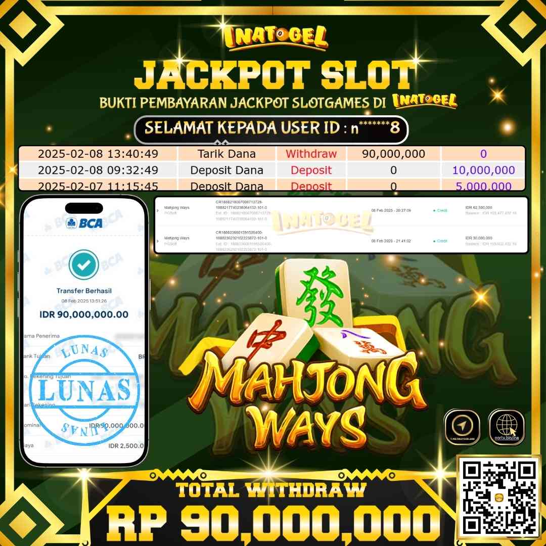Inatogel Jackpot Slot Game Mahjong Ways Rp90,000,000