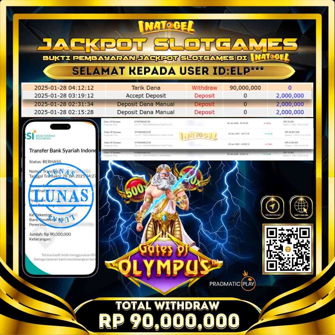 Inatogel Jackpot Slot Game Gates Of Olympus Rp90,000,000
